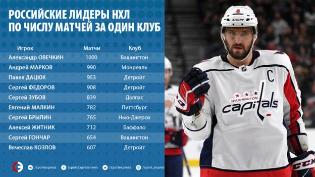 По количеству матчей в НХЛ Ови располагается на седьмом месте среди россиян. Все шесть лидеров уже закончили карьеру, поэтому догнать их Александру вполне по силам. При условии, что еще он проведет в НХЛ четыре полных сезона. Ближайший в списке – Сергей Зубов (1068 матчей). Его достижение Овечкин может превзойти уже в следующем году, если сумеет избежать травм.