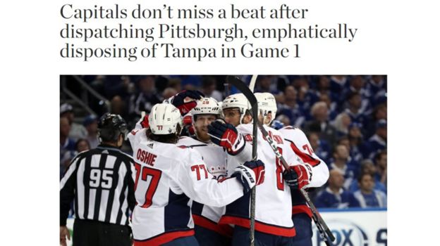 Как оказалась, против "Тампы" играла чертовски хорошая команда. Да, и можно забыть все эти полушуточные разговоры на тему того, что "Вашингтон" добился своей цели в этом плей-офф. У команды еще остаются кое-какие планы, которые включают в себя и победу в Кубке Стэнли. А "Тампа" как раз оказалась на их пути.
