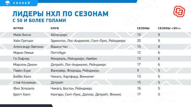 Также 34-летний форвард в девятый раз в карьере завоевал «Морис Ришар Трофи» (правда, впервые не единолично, а совместно с Давидом Пастрняком из «Бостона»). Овечкин обновил собственный рекорд лиги — у Бобби Халла было семь снайперски побед. При этом Александр Великий упустил возможность догнать Майка Босси и Уэйна Гретцки по числу сезонов с 50 голами. У канадских легенд таковых по девять.