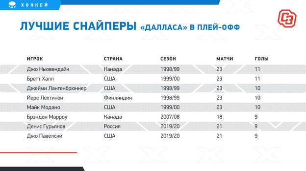 Вратарь Худобин — по числу побед к Хабибулину, а форвард Гурьянов — по числу голов за «Даллас» к Халлу и Ньювендайку.