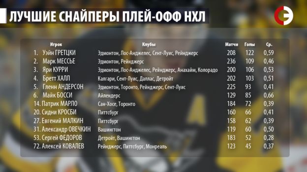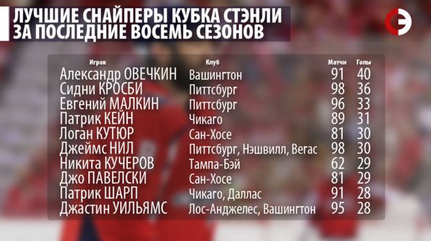 За последние восемь сезонов Овечкин забросил в плей-офф 40 шайб. Это лучший результат в НХЛ. Сидни Кросби за это время отличился 36 раз, Евгений Малкин – 33, а Патрик Кейн – 30.