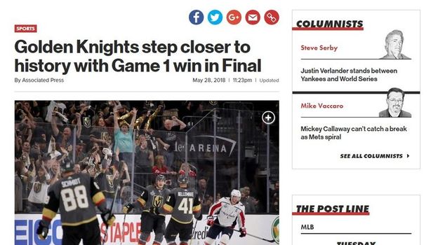 Переиграв "Кэпиталз" со счетом 6:4, "Голден Найтс" ввели нового члена в это избранное общество. В общество, в котором состоят "Лос-Анджелес", "Сан-Хосе" и "Виннипег". Уверен, что все представители этих вышеперечисленных команд, смотря первый матч финала Кубка Стэнли, прекрасно понимали, с чем столкнулся "Вашингтон".