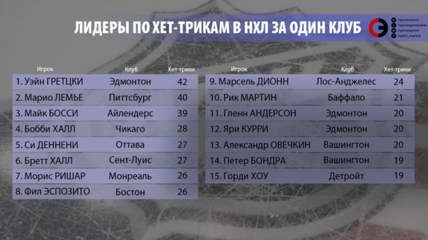 Также Овечкин догнал Павла Буре по общему числу хет-триков в регулярных чемпионатах. Правда, в отличие от "Русской ракеты" Александр Великий всю карьеру провел в одной команде.