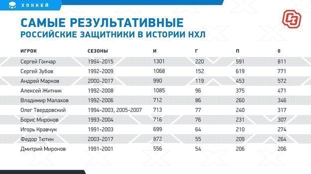 За «Монреаль» он провел 16 сезонов, сыграв 990 матчей. Только пять человек в истории легендарного клуба во главе с Анри Ришаром и Ларри Робинсоном преодолели тысячную отметку. Марков в интервью намекнул, что хотел бы вернуться в «Канадиенс». Провести 1000 игр в свитере одного клуба — это прекрасное во всех отношениях достижение. Почему бы и нет? Это была бы красивое окончание длинной карьеры. Вот только есть ли такие планы у руководства «Монреаля», выжившего из клуба всех русских игроков за последние пару лет и не договорившего с самим Марковым о новом контракте два года назад.