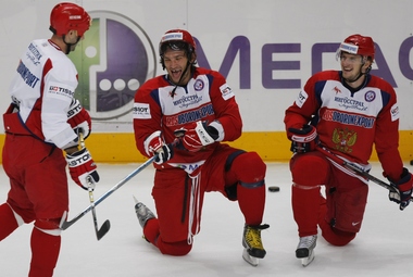 Размялись и разогрелись хоккеисты второй день подряд во время утреннего занятия в УСК ЦСКА и на льду почти сразу принялись выполнять необходимые упражнения. Сама по себе тренировка заняла не так много времени, как ждали зрители: после нескольких упражнений и буллитов, исполнявшихся одновременно в разные ворота, игроки отправились в раздевалку. Проведя тактическую установку, через несколько минут Вячеслав Быков вывел своих подопечных на небольшой матч.