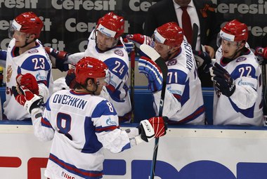 Россия: Кошечкин. Гребешков - Корнеев, Овечкин - Федоров - Семин. Куликов - Атюшов, Ковальчук (к) - Терещенко - Фролов. Емелин - Никулин, Мозякин - Анисимов - Сушинский. Калинин, Козлов - Кулемин - Афиногенов.