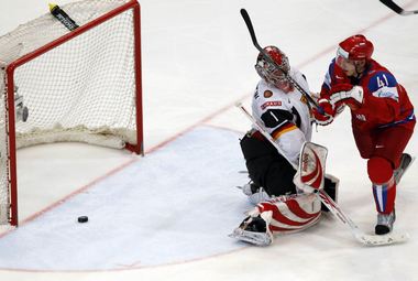 Неприятности для россиян возникли с сиреной на второй перерыв. Немецкого джокера Эрхоффа прежде всего опасались из-за коварных бросков от синей линии, защитник же в конце второй 20-минутки ужалил с пятачка. Вольф отборолся за воротами Варламова, выложил шайбу партнеру, а тот при противодействии Мозякина махнул над плечом вратаря. Секундой позже - все бы обошлось. А так - неприятный гол перед "перекуром" (эта тема стараниями таблоидов довольно болезненна для сборников).