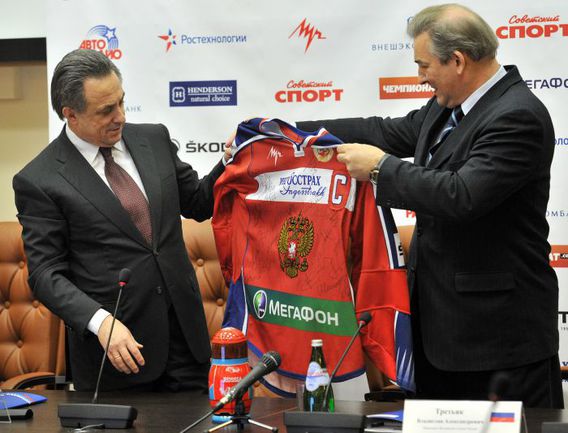 Виталий Мутко стремительно ворвался в зал, занял место в президиуме и, не теряя времени, попытался взять инициативу в свои руки. Но прежде, чем он успел сказать хоть слово, в дело вмешался Владислав Третьяк, преподнесший министру подарки - 8 декабря тому исполнилось 53 года. Мутко довольно улыбнулся. Красочная матрешка, где каждая фигурка представляла отдельную сборную - начиная с первой и заканчивая женской ("Наши женщины не такие еще титулованные, поэтому и маленькие", - с улыбкой добавил Третьяк), свитер капитана Никулина и клюшка с автографами - все эти презенты были чудо как хороши.