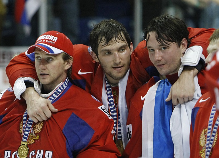 Чемпионы мира Евгений НАБОКОВ, Александр ОВЕЧКИН и Илья КОВАЛЬЧУК (слева направо).