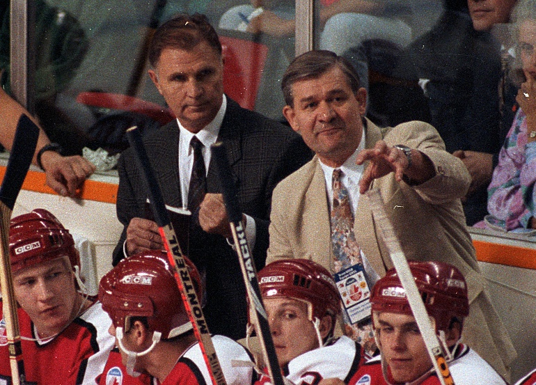 1991 год. Кубок Канады. Виктор ТИХОНОВ И Владимир ЮРЗИНОВ. Фото – Александр ФЕДОРОВ, "СЭ"