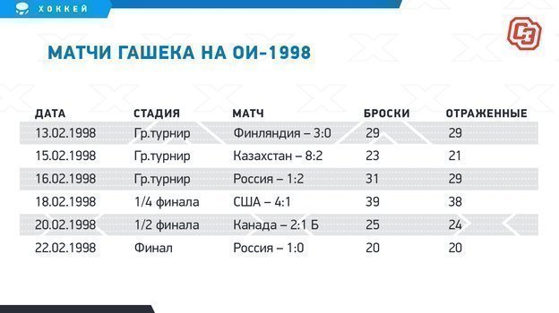 Последний сезон в карьере в возрасте 45 лет Доминатор провел на приличном уровне в КХЛ, выступая за «Спартак». Однако в памяти российских болельщиков Гашек остался как человек, лишившийся золота сборную России в финале Олимпийских Игр-1998 в Нагано. С тех пор прошло 22 года — достаточный срок для того, чтобы миф превратился в не требующую доказательств истину.