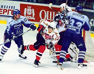 "Динамо" оказалось в роли догоняющего - и тут же заиграло увереннее и смышленее. А толку-то, ведь до поры до времени казалось, что пробить Вьюхина - пустое дело. Вратарь как всегда был неподражаем. Но в середине первого периода все-таки дал маху. Савченков издали щелкнул, конечно, здорово - слов нет. Однако Вьюхин зевнул момент броска и шайбу увидел уже лишь в сетке. |