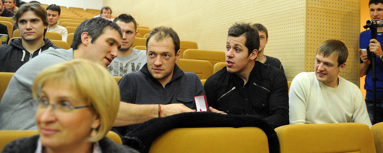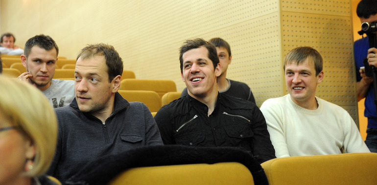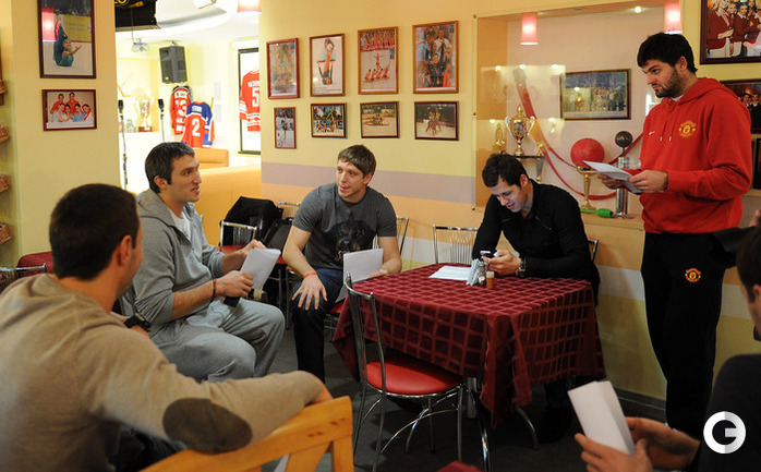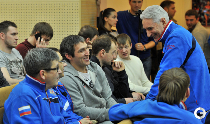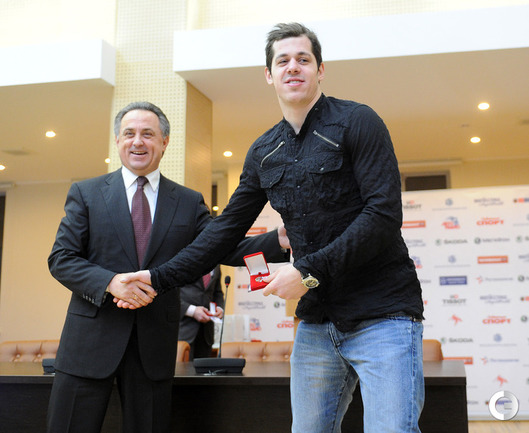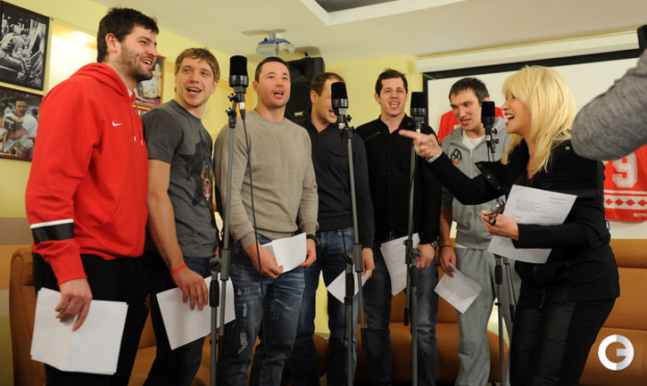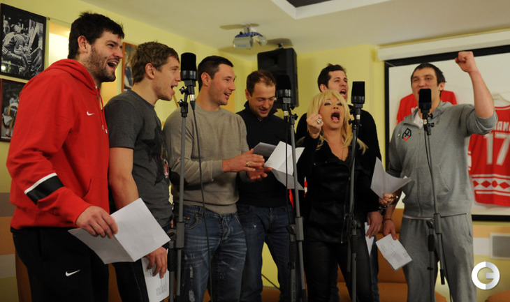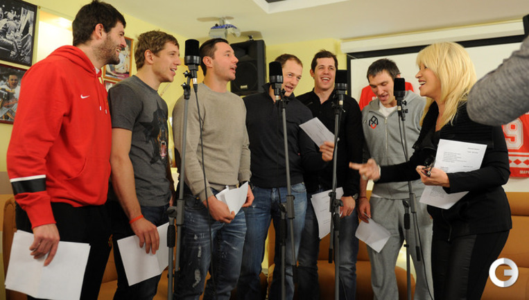 11 декабря 2012 года. УТЦ"Новогорск". Награждение хоккеистов сборной России по хоккею, а также их совместный клип с певицой Ириной Аллегровой. Фото-Алексей ИВАНОВ "СЭ".