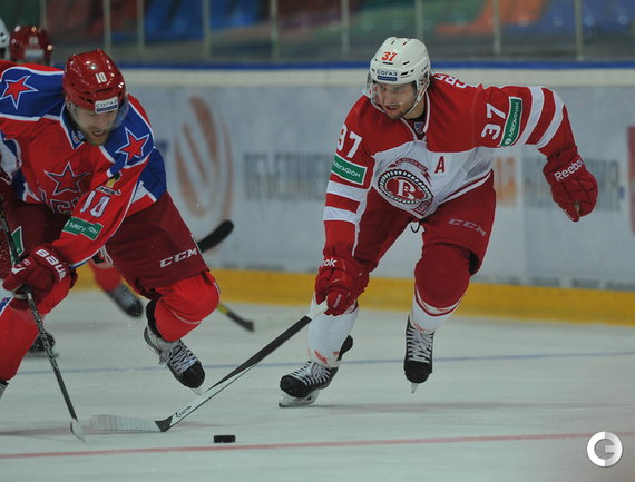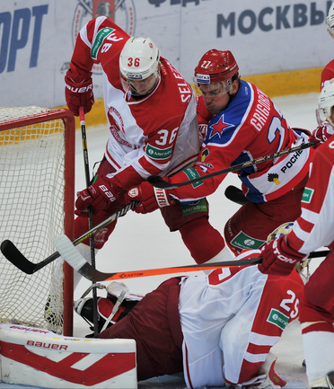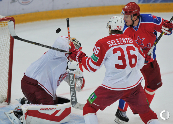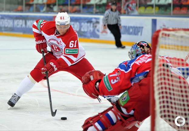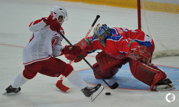 Хоккей. Кубок мэра Москвы. ЦСКА – "Витязь" – 2:3 (1:0,1:2, 0:0, 0:1). В турнире на Кубок мэра Москвы ЦСКА на своей площадке проиграл "Витязю" – 2:3 (Б). Основное время и овертайм победителя не выявили, а в серии буллитов сильнее были подмосковные хоккеисты. Решающий бросок точно выполнил Вячеслав Солодухин.Фото - Александр Федоров, "СЭ"