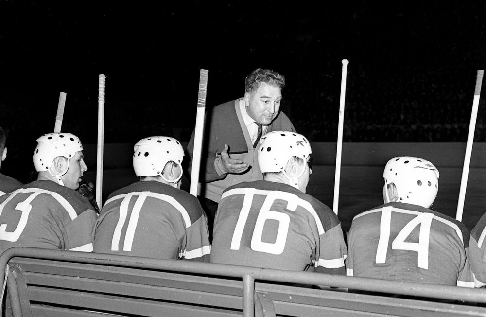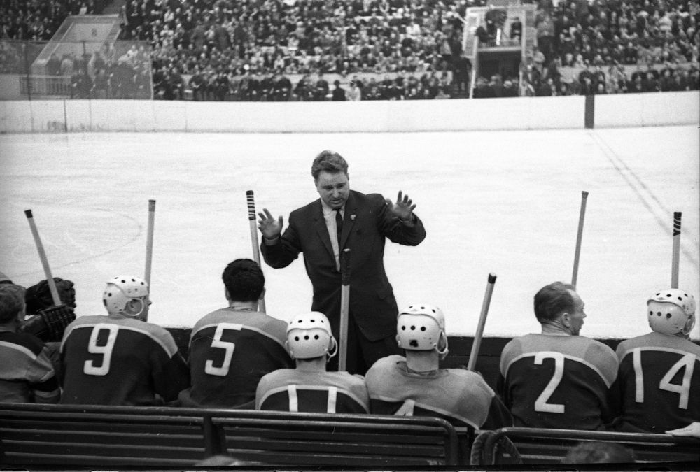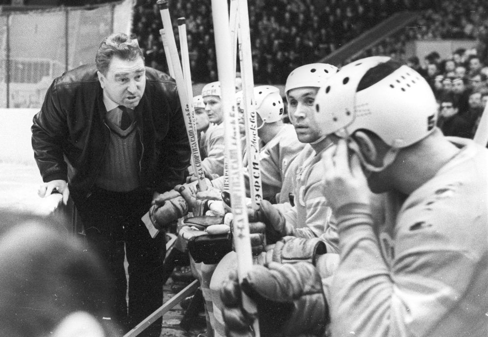 14. Анатолий Тарасов руководит игрой сборной СССР.