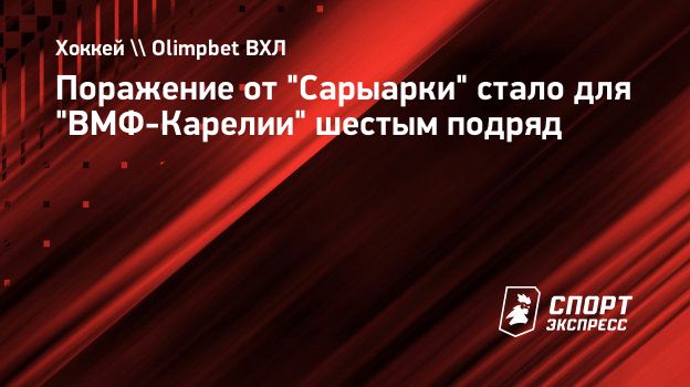 В матче регулярного чемпионата ВХЛ аутсайдер турнира "ВМФ-Карелия" проиграла "Сарыарке" на своем льду – 1:3. Это поражение стало для команды из Кондопоги шестым подряд.