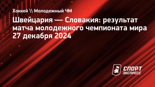 Швейцария U20 — Словакия U20 — 1:2 (0:1, 1:0, 0:1)