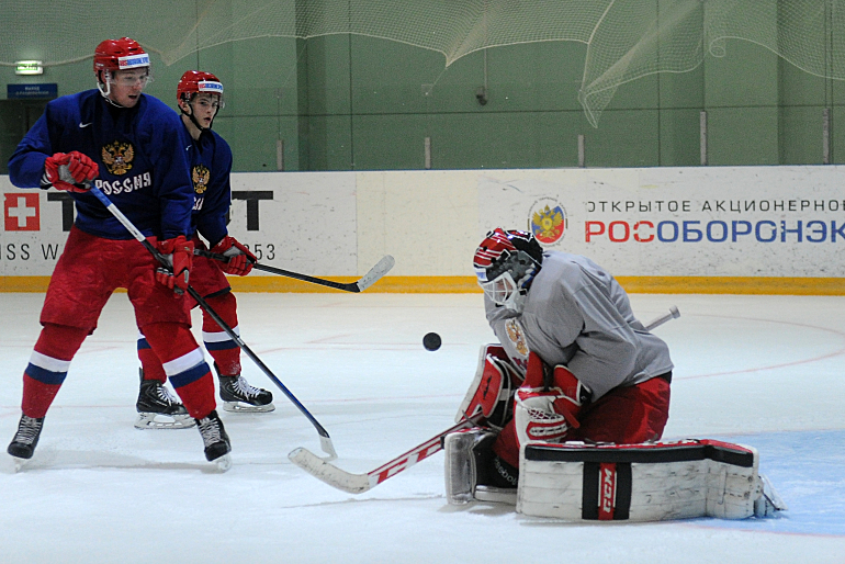 В четверг молодежная сборная России, продолжающая подготовку к чемпионату мира, который пройдет в Торонто и Монреале, провела открытую тренировку