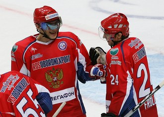 Нападающие: Данис Зарипов, Сергей Зиновьев, Илья Ковальчук, Николай Кулемин, Евгений Малкин, Алексей Морозов, Иван Непряев, Александр Овечкин, Александр Радулов, Петр Счастливый, Александр Фролов, Александр Харитонов. |