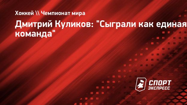 Защитник молодежной сборной России Дмитрий Куликов заявил после матча за 3-е место со Словакией (5:2), что не мог себе представить, что вернется домой без медали. "Мы сыграли как единая команда. Это была хорошая победа. Я просто не мог себе представить, что мы вернется домой без медалей", - отметил Куликов в интервью официальному сайту Международной федерации хоккея. |