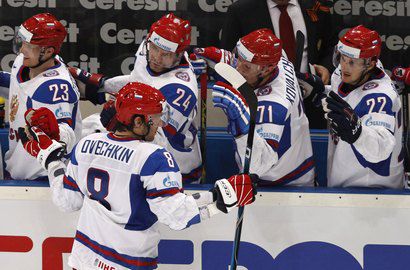 Россия: Кошечкин. Гребешков - Корнеев, Овечкин - Федоров - Семин. Куликов - Атюшов, Ковальчук (к) - Терещенко - Фролов. Емелин - Никулин, Мозякин - Анисимов - Сушинский. Калинин, Козлов - Кулемин - Афиногенов.