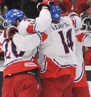 В Кельне закончился первый период финала чемпионата мира-2010 Россия - Чехия. Команда Вячеслава Быкова уступает 0:1 после гола Якуба Клепиша на 20-й секунде. Перед перерывом Павел Дацюк распечатал Томаша Вокоуна, однако взятие ворот состоялось уже после истечения 20 минут периода, а потому засчитано не было.