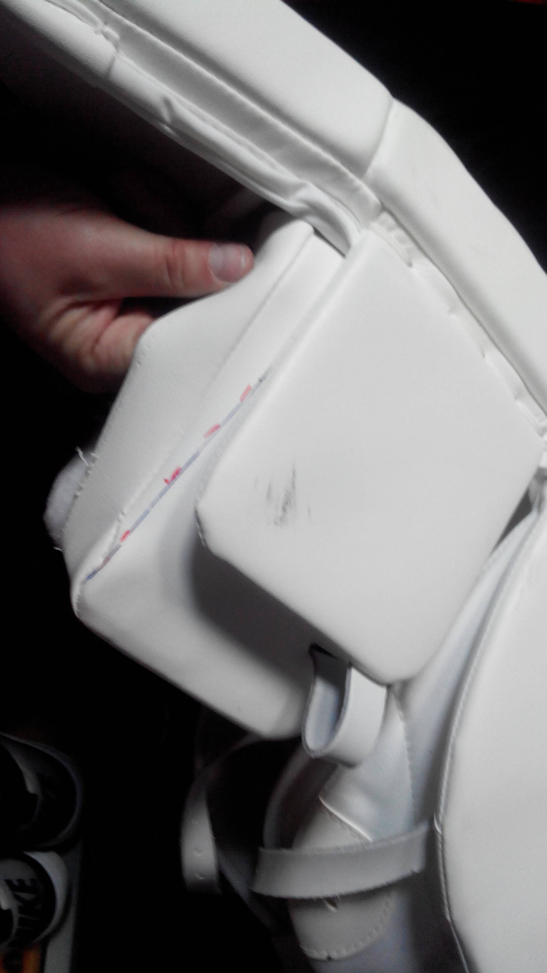 Вчера. Минск. Раздевалка сборной России. Щиток раздора Сергея Бобровского. Фломастером указан легальный размер.