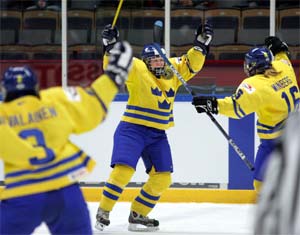 Голы: Рут (Андерссон, Хольмлов), 40:17 (1:0 - бол.). Оконнор, 47:43 (2:0). Рут (Хольмлов), 48:43 (3:0). Андерссон (Шоландер, Викман), 52:03 (4:0 - бол.). Невалайнен (Лундберг, Викман), 56:37 (5:0). Потапова (Атарская), 57:51 (5:1). |