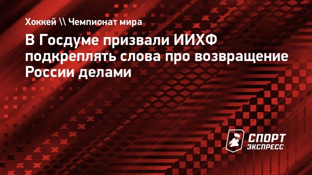 В Госдуме призвали ИИХФ подкреплять слова про возвращение России делами