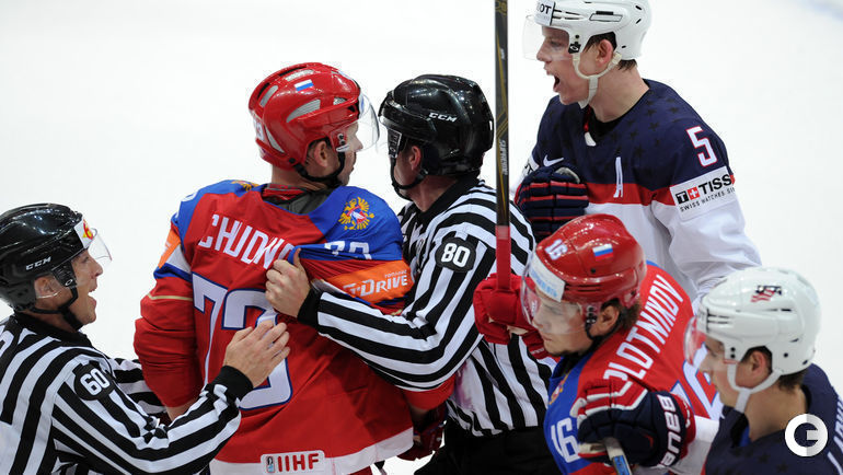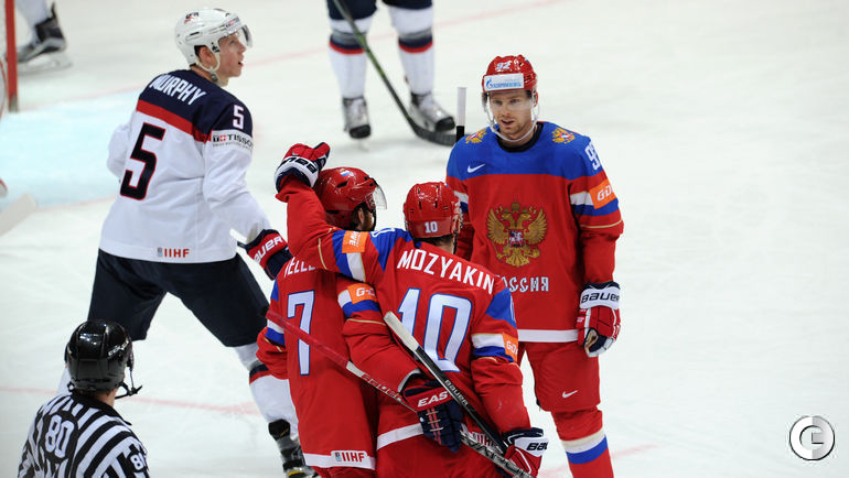 Сборная России в матче за третье место чемпионата мира обыграла США - 7:2. В составе победителей дублем отметился Сергей Мозякин, еще по шайбе забросили Вячеслав Войнов, Иван Телегин, Евгений Дадонов и Артемий Панарин и Вадим Шипачев. В составе американцев обе шайбы забросил Фрэнк Ватрано.