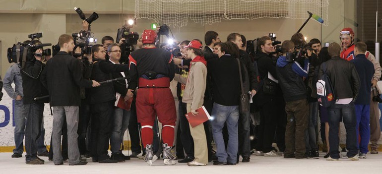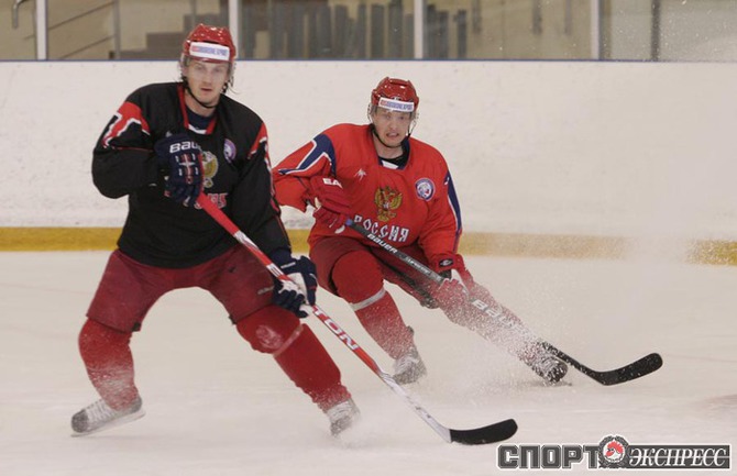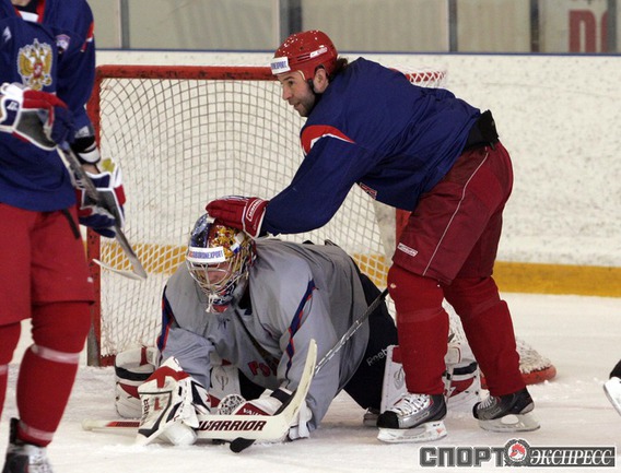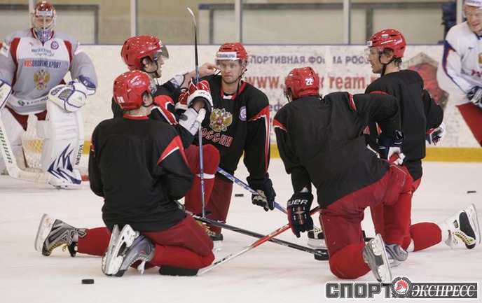Перед отъездом на чемпионат мира в Германию сборная России по хоккею провела открытую для прессы тренировку на олимпийской базе в Новогорске. Фото - Федор УСПЕНСКИЙ, "СЭ"