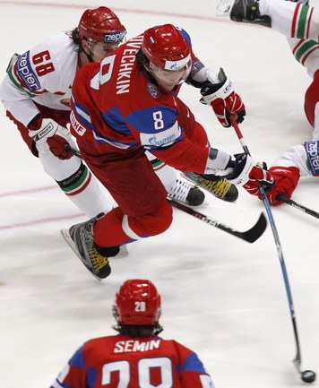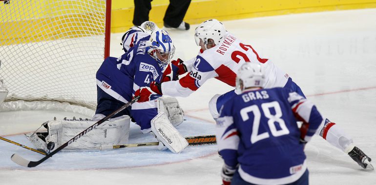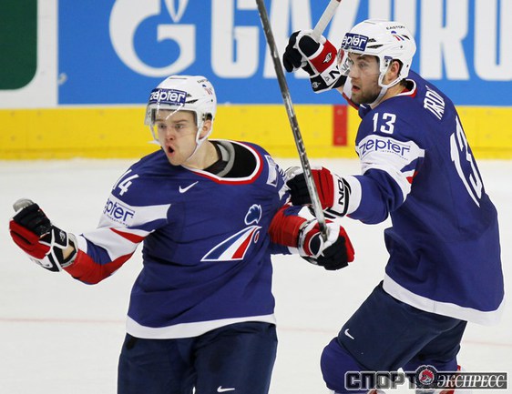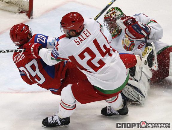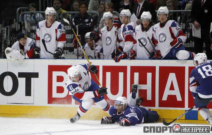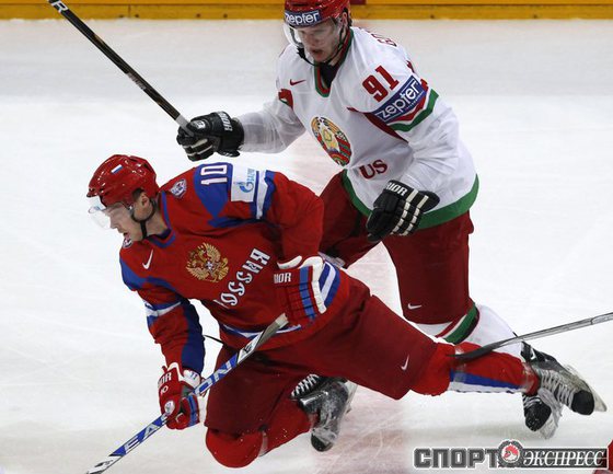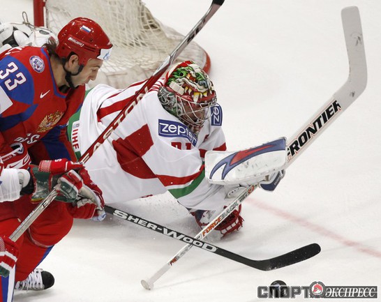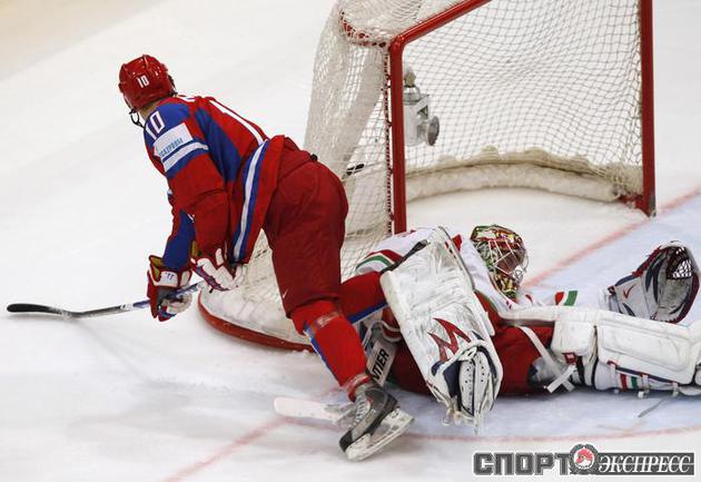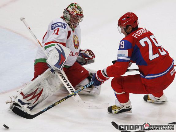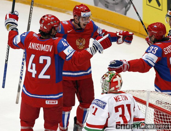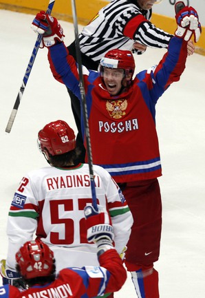 Чемпионат мира. Первый групповой турнир. 3-й тур. Франция - Норвегия - 1:5 (1:0, 0:1, 0:4). Россия - Белоруссия - 3:1 (1:0, 2:0, 0:1). Переиграв Белоруссию в заключительном матче 1-го группового этапа чемпионата мира, сборная России вышла во второй раунд турнира с максимально возможным количеством очков. Фото REUTERS