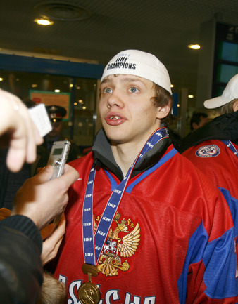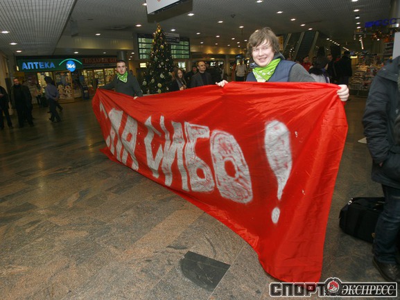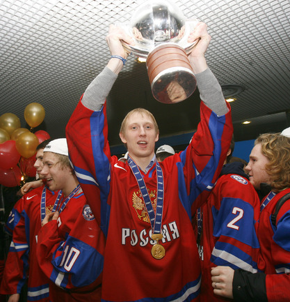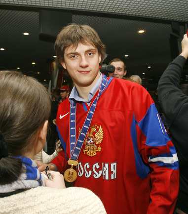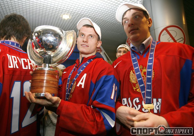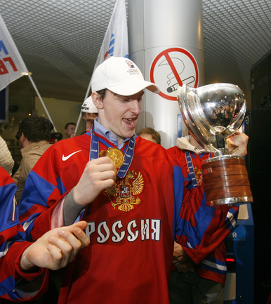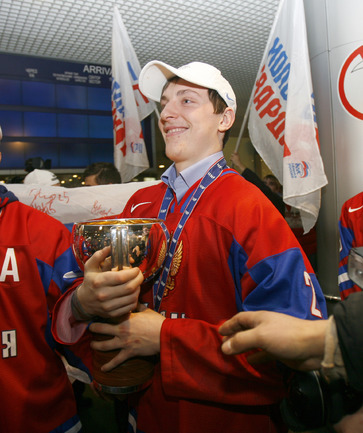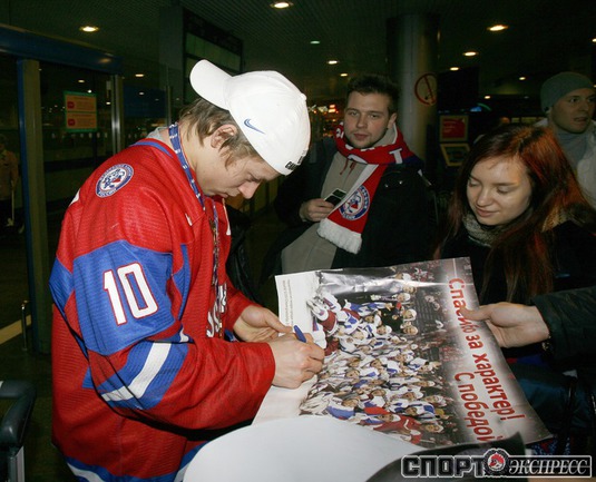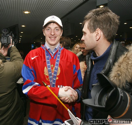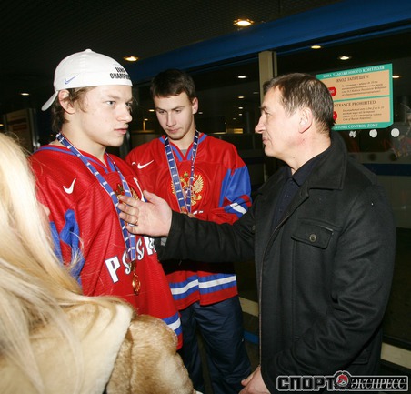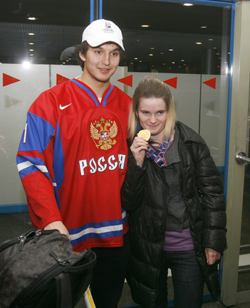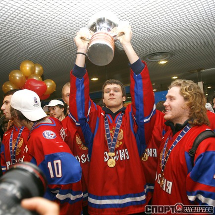 Хоккеисты молодежной сборной России возвратились домой. Встреча чемпионов мира в аэропорту "Шереметьево". Фото - Татьяна ДОРОГУТИНА, "СЭ"