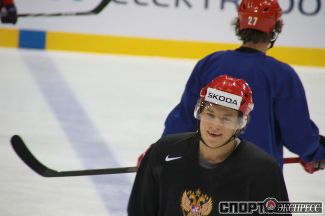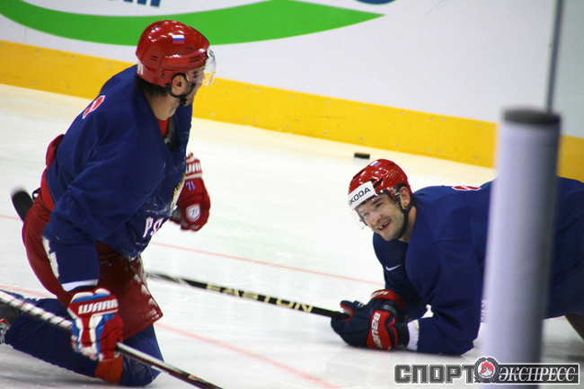 Репортаж специального корреспондента "СЭ" Юрия Голышака с чемпионата мира по хоккею в Словакии. Тренировка сборной России перед матчем с Данией.