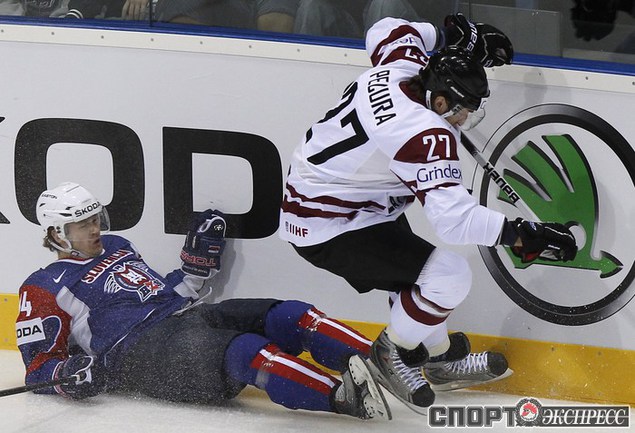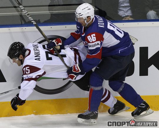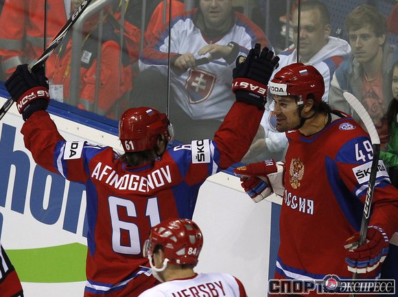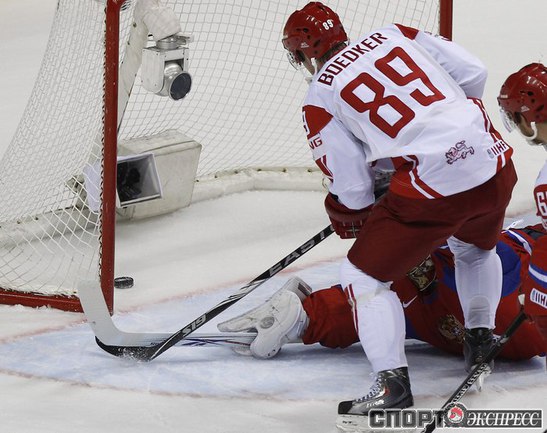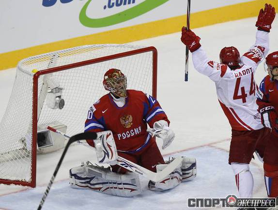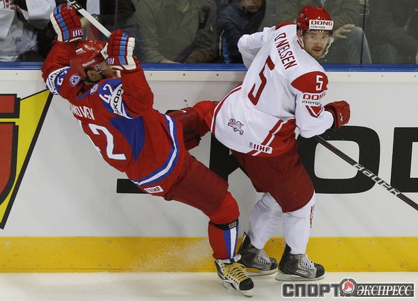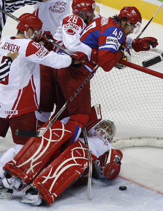 Чемпионат мира по хоккею. Кошице (Словакия). Утешительный раунд. 1-й тур. Белоруссия - Австрия - 7:2 (3:0, 2:0, 2:2). Братислава (Словакия). Чемпионат мира. Утешительный раунд. 1-й тур. Словения - Латвия - 5:2 (0:0, 3:0, 2:2). Братислава (Словакия). Квалификационный раунд. Группа E. 1-й тур. Россия - Дания - 4:3 (1:2, 2:0, 1:1). Хет-трик на счету Сергея Зиновьева. Фото REUTERS
