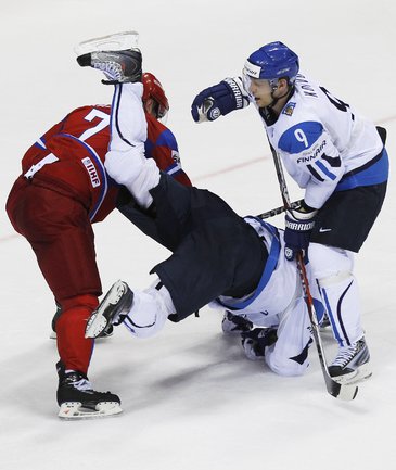 Чемпионат мира по хоккею. Братислава (Словакия). Группа E. 3-й тур. Словакия - Дания - 4:1 (2:1, 0:0, 2:0). Братислава (Словакия). Группа F. 3-й тур., Франция - Норвегия - 2:5 (1:3, 1:1, 0:1). Покер Мариуса Холтета вывел Норвегию в четвертьфинал чемпионата мира. Братислава (Словакия). Группа Е. 4-й тур. Россия – Финляндия – 2:3 Б (2:0, 0:2, 0:0, 0:0). Сборная России, не сумев добиться победы в основное время, заняла четвертое место в группе Е и теперь в 1/4 финала встретится с победителем группы F. Фото REUTERS