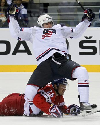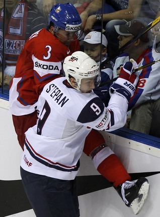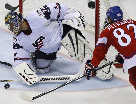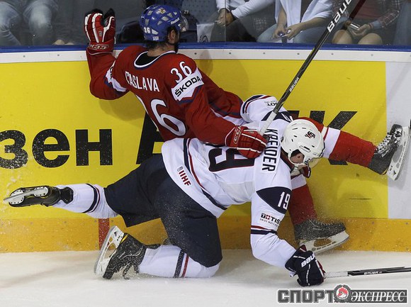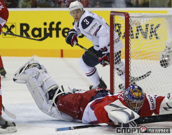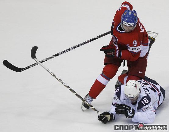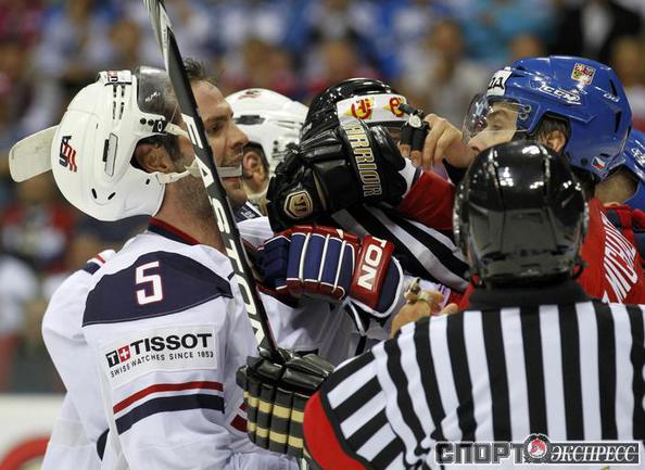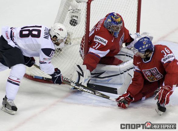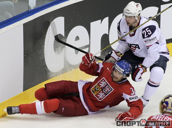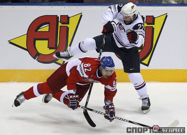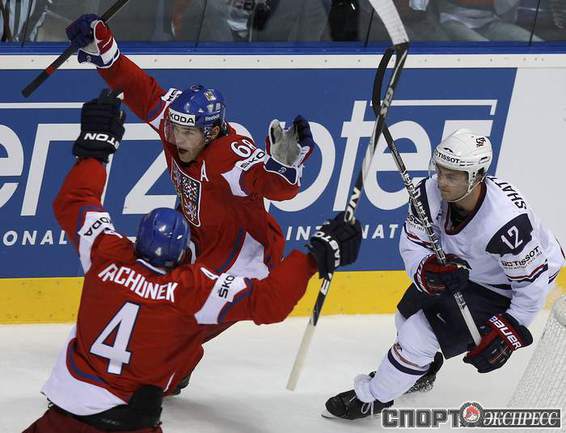 Чемпионат мира по хоккею. Братислава (Словакия). 1/4 финала. Чехия - США - 4:0 (1:0, 1:0, 2:0). Голы: Ягр - 1 (Червенка), 18:45 (1:0). Ягр - 2 (Плеканец, Рахунек), 24:47 (2:0 - бол.). Плеканец - 1 (Фролик, Жидлицки), 50:33 (3:0). Ягр - 3 (Плеканец), 56:25 (4:0). Фото REUTERS