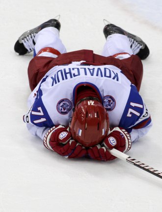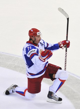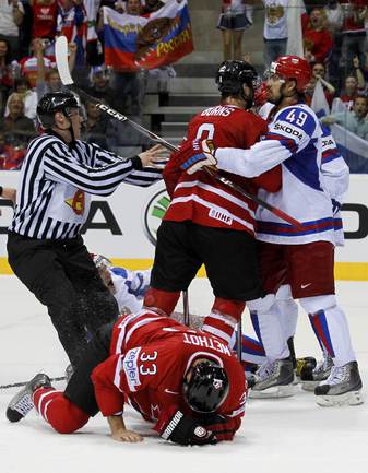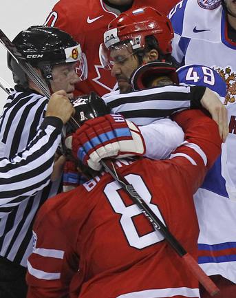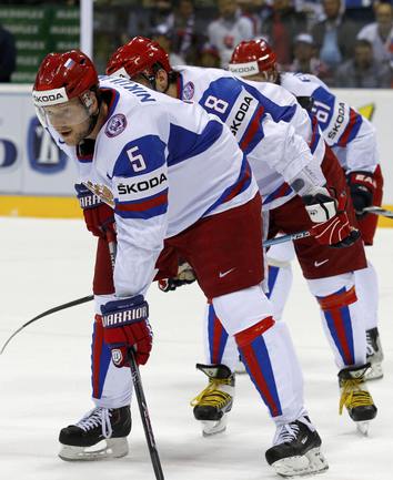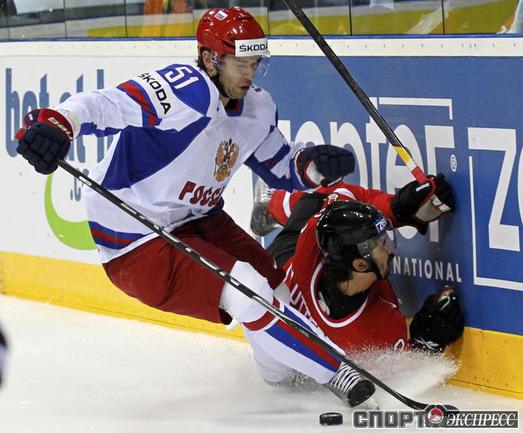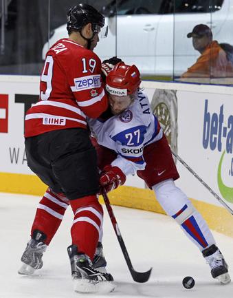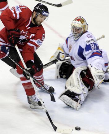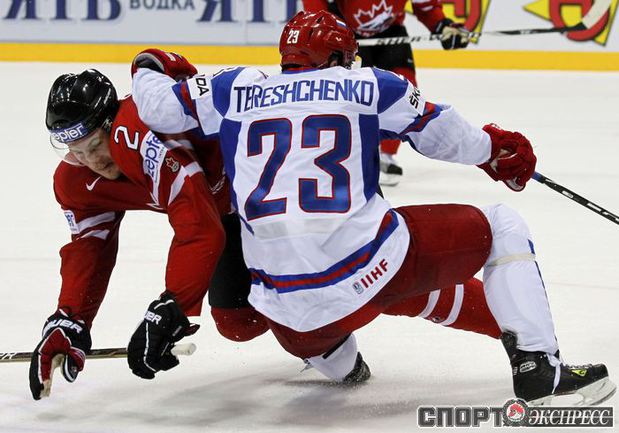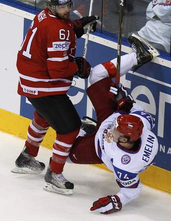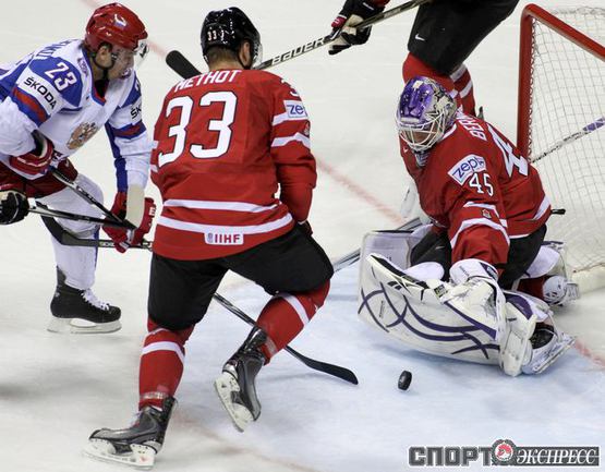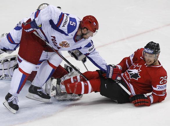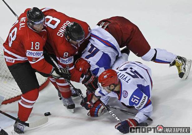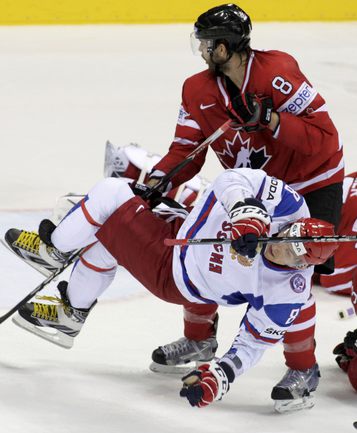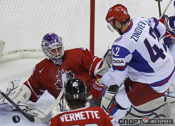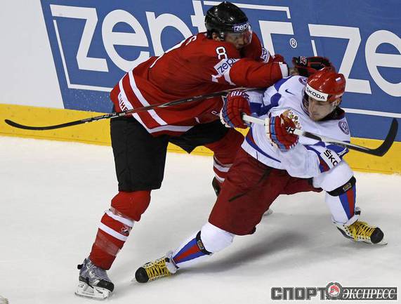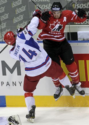 Чемпионат мира по хоккею. Братислава (Словакия). 1/4 финала. Канада - Россия - 1:2 (0:0, 1:0, 0:2). Голы: Спецца (Пьетранджело), 25:32 (1:0). Кайгородов, 49:07 (1:1 - мен.). Ковальчук (Калинин, Радулов), 52:19 (1:2). В полуфинале сборная России встретится с командой Финляндии. Фото REUTERS