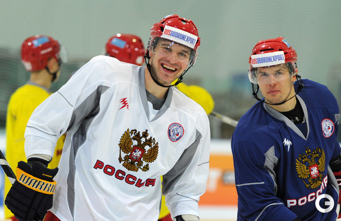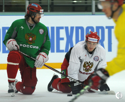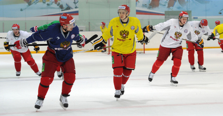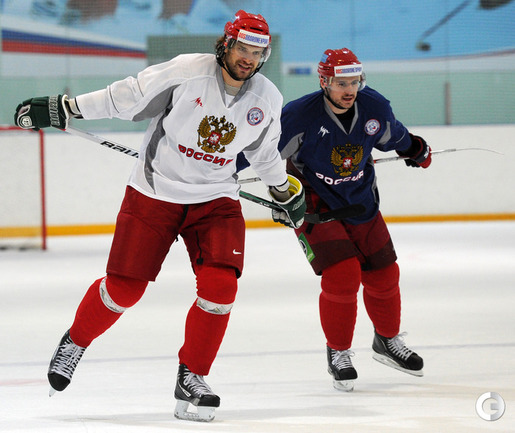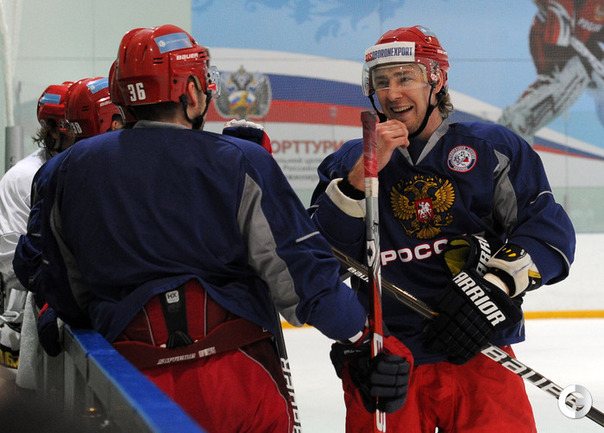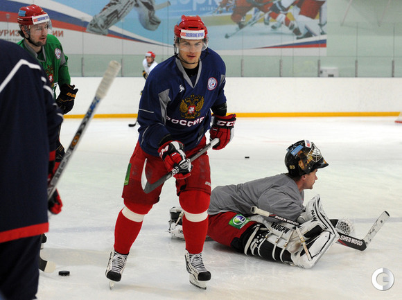 НА ТРЕНИРОВКЕ СБОРНОЙ РОССИИ ПО ХОККЕЮ
