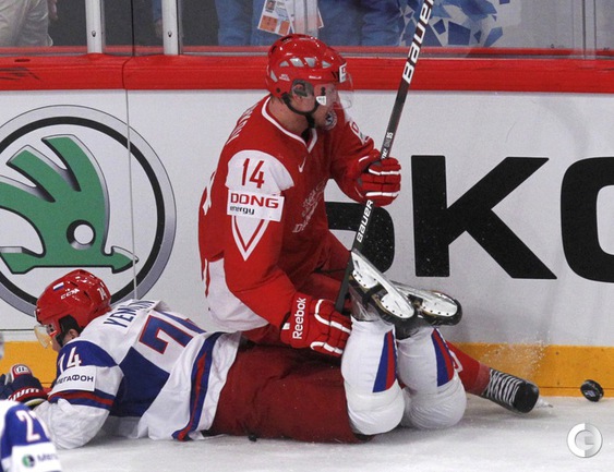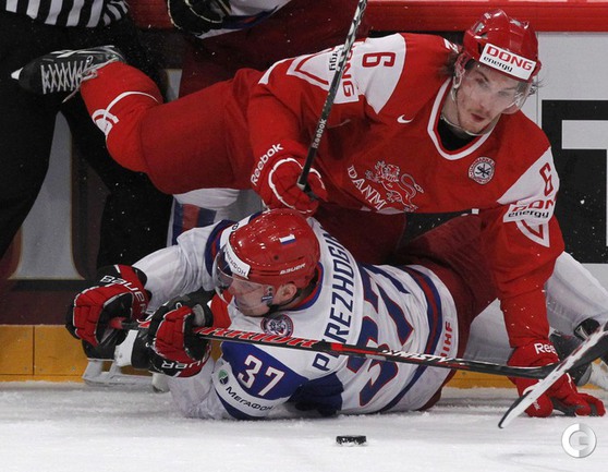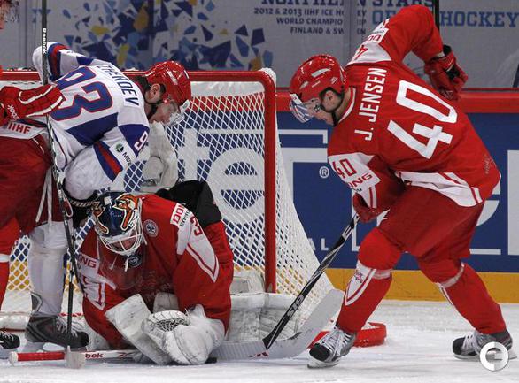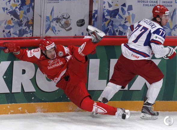 Хоккей. Стокгольм. Чемпионат мира. Групповой турнир. Группа B. РОССИЯ - Дания - 3:1 (2:1, 1:0, 0:0). Голы: Медведев - 1, 2:08 (0:1). Эллер - 3, 4:11 (1:1). Малкин - 3, 13:35 (1:2). Калинин - 1, 26:32 (1:3). Завтра сборная России, одержавшая четвертую победу на ЧМ-2012, сыграет со Швецией. Группа A. США - Белоруссия - 5:3. Голы: Абделькадер - 1, 1:39 (1:0). Аткинсон - 1, 6:31 (2:0). Калюжный - 1, 16:15 (2:1). Угаров - 2, 22:50 (2:2 - бол.). Томпсон - 2, 38:21 (3:2). Райан - 2, 52:10 (4:2). Штясны - 2, 55:34 (5:2). Ковыршин - 2, 59:50 (5:3 - бол.). Фото REUTERS