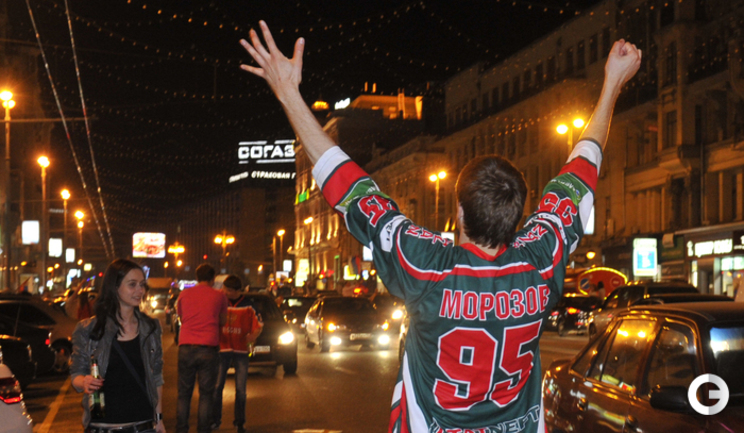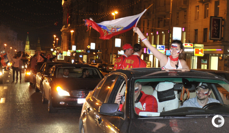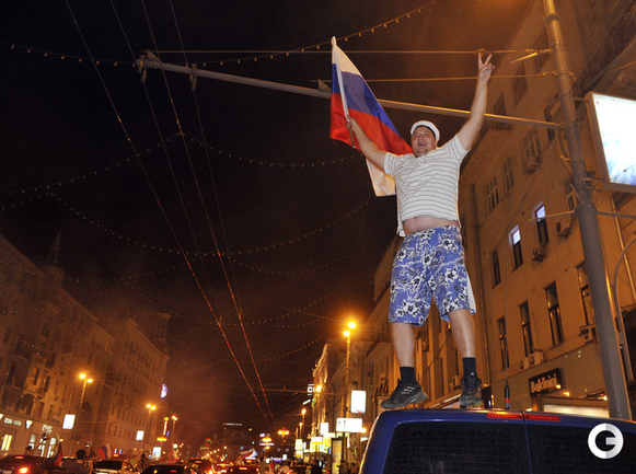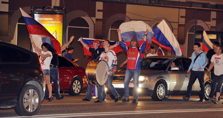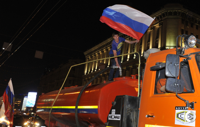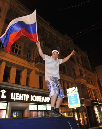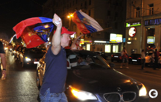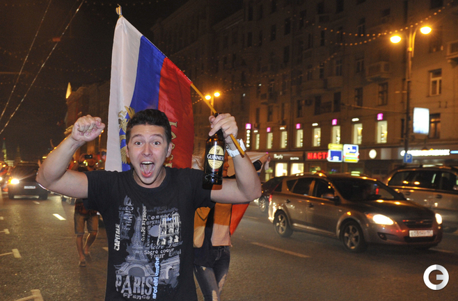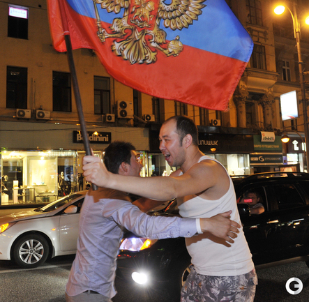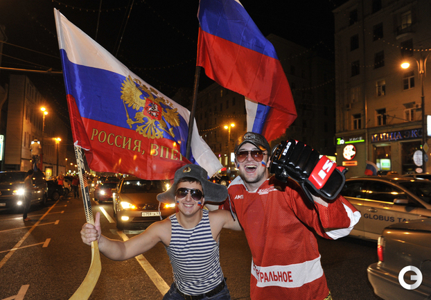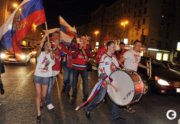 После победы сборной России на чемпионате мира по хоккею болельщики вышли на улицы ночной Москвы. Фото - Александр ФЕДОРОВ, "СЭ"