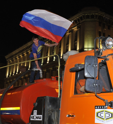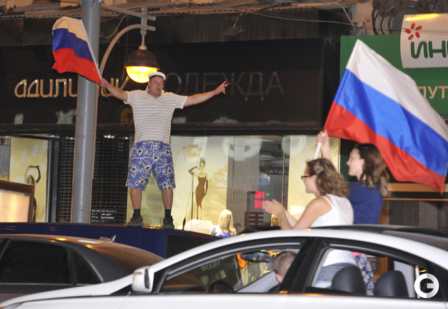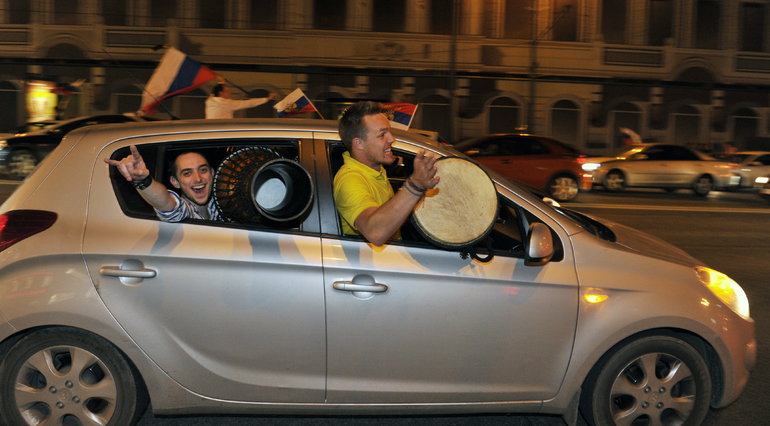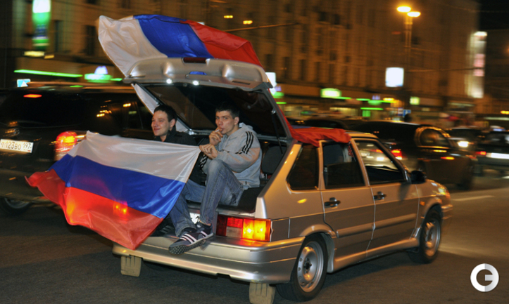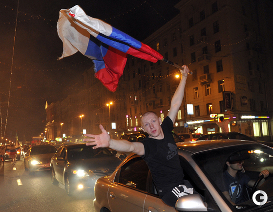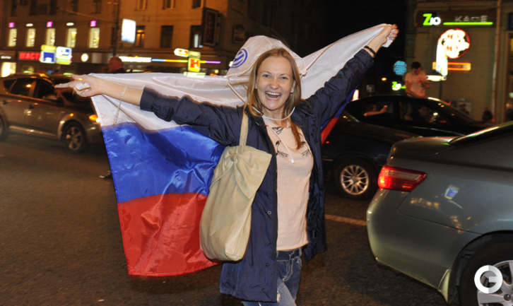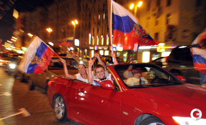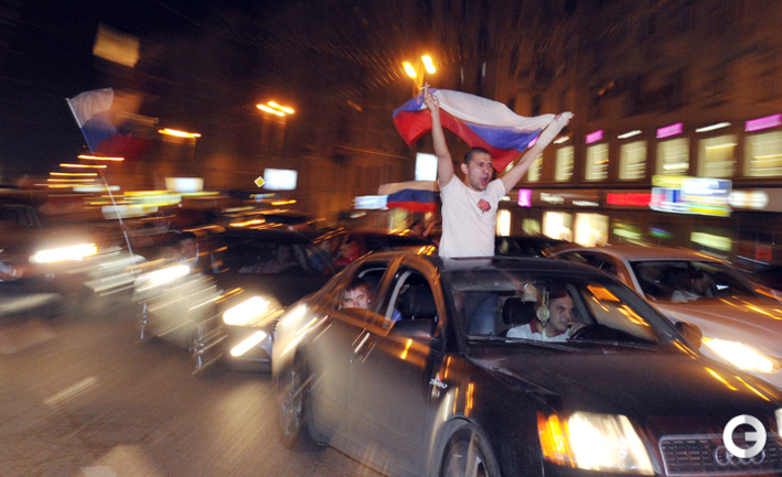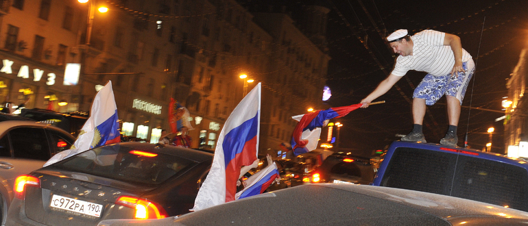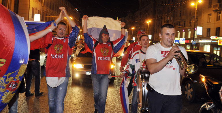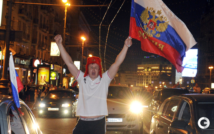 После победы сборной России на чемпионате мира по хоккею болельщики вышли на улицы ночной Москвы. Фото - Александр ФЕДОРОВ, "СЭ"