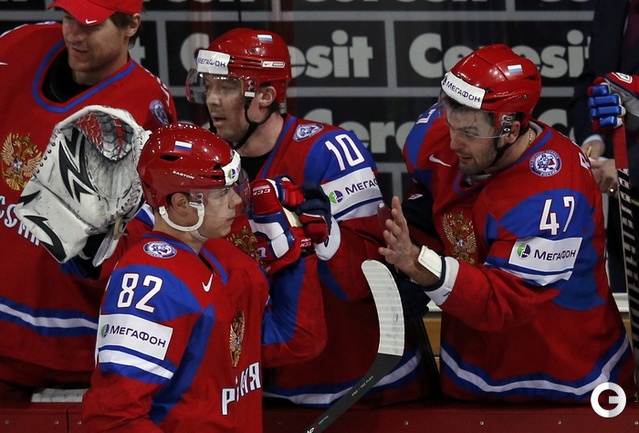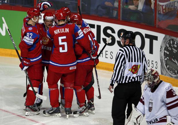 Хоккей. Хельсинки. Чемпионат мира. Групповой турнир. Группа В. Россия – Латвия – 6:0. Голы: Бирюков – 1 (Соин, Свитов), 13:03 (1:0). Медведев – 1 (Петров), 28:44 (2:0). Радулов – 1 (Ковальчук, Бирюков), 32:59 (3:0). Рясенский – 1 (Пережогин, Белов), 38:55 (4:0). Ковальчук – 1 (Локтионов), 40:17 (5:0). Петров – 1 (Терещенко, Медведев), 44:11 (6:0 – бол.). Фото AFP, REUTERS