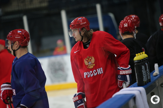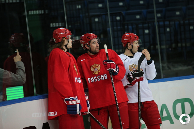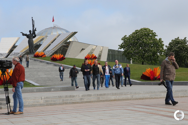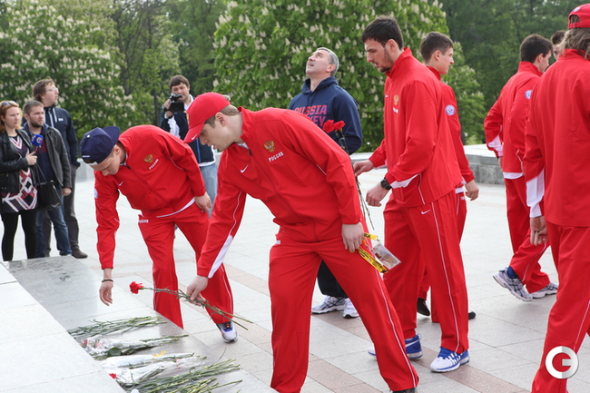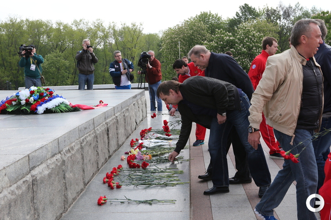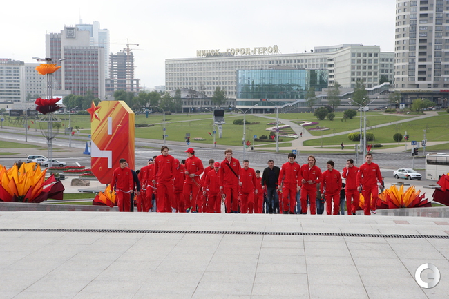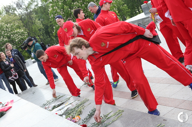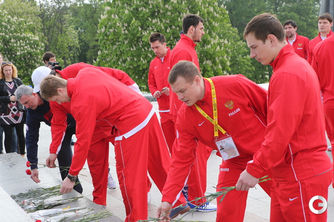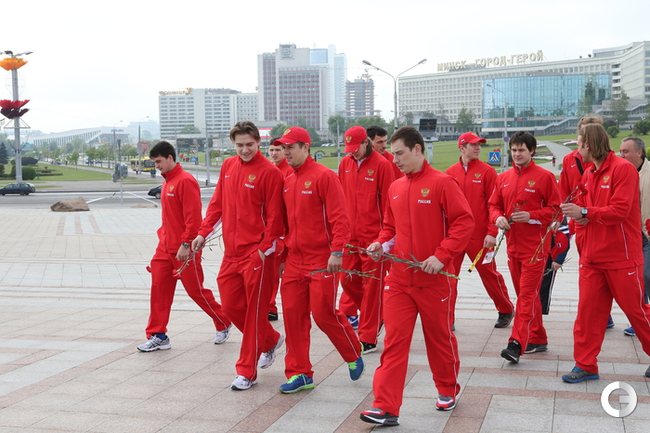 09.05.2014. Игроки сборной возложили цветы к монументу «Минск — город-герои?». Фото ФХР
