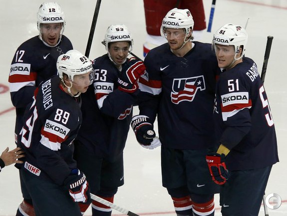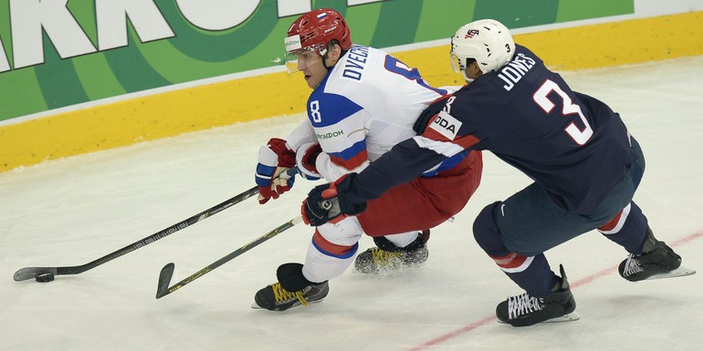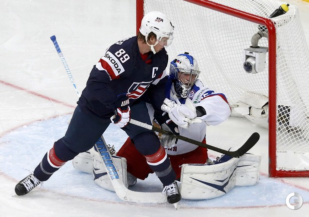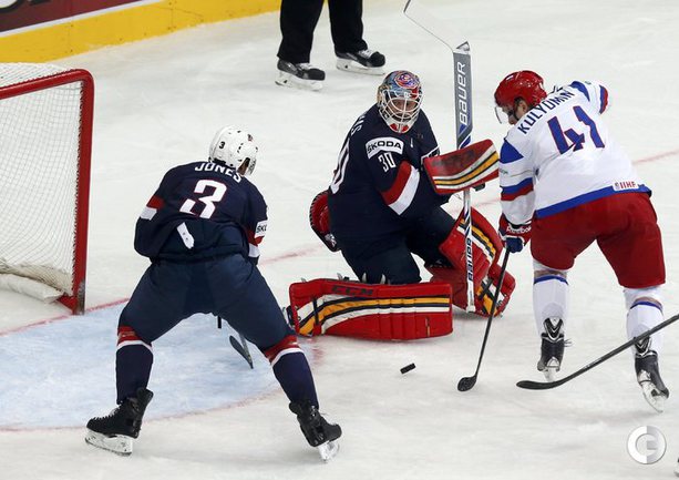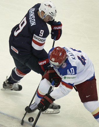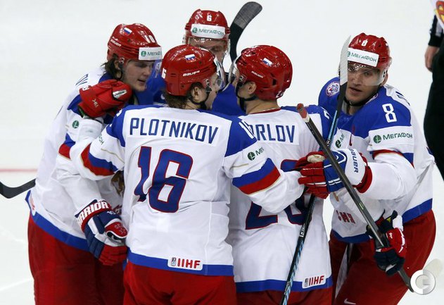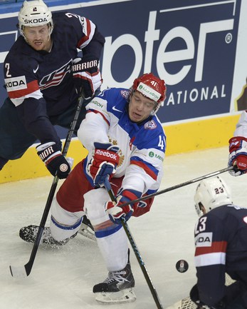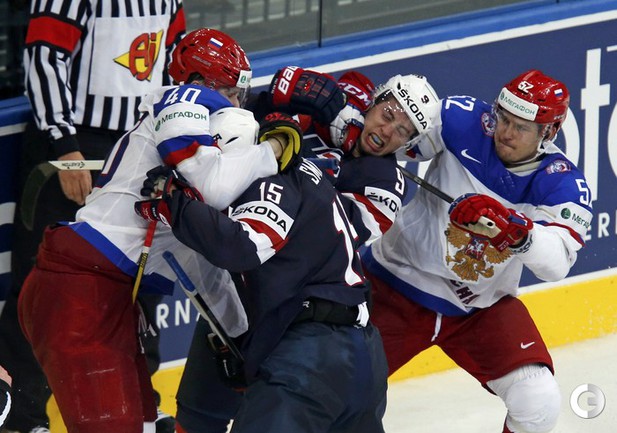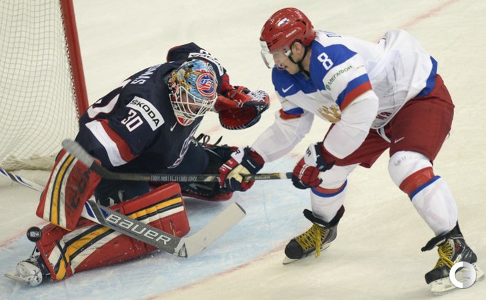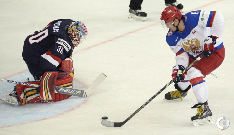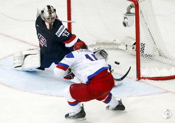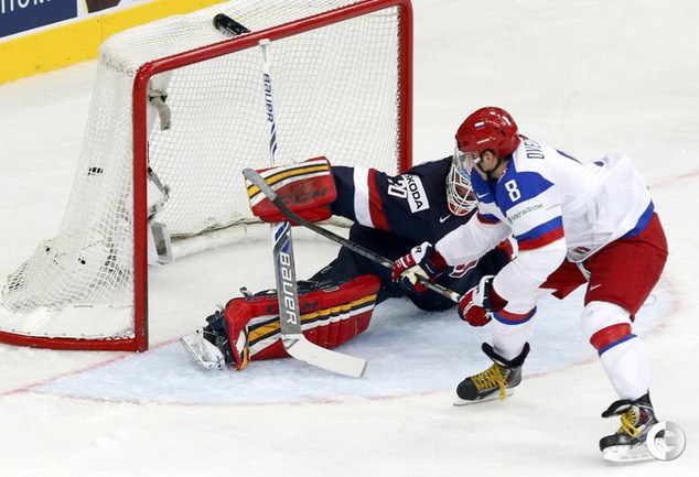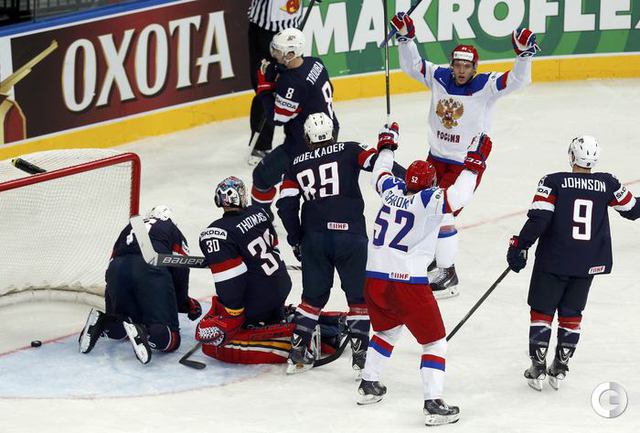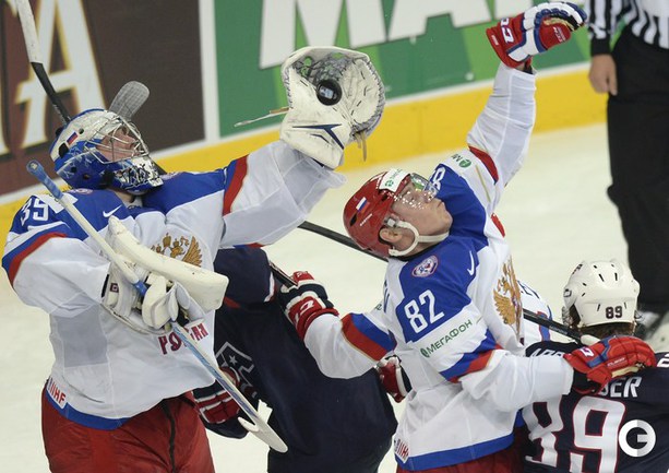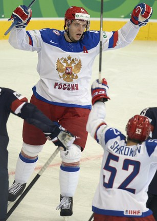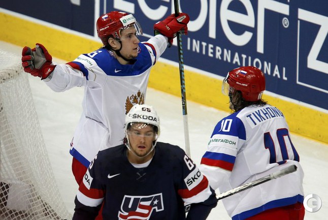 Хоккей. Минск. Чемпионат мира. Групповой этап. Группа В. РОССИЯ - США - 6:1 (2:0, 4:1, 0:0). Это третья подряд победа россиян на турнире. Нападающий Виктор Тихонов набрал 3 (2+1) очка. Фото AFP и REUTERS