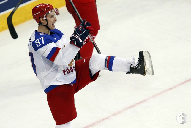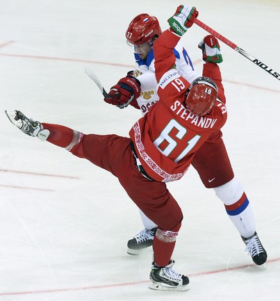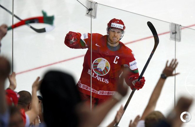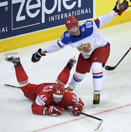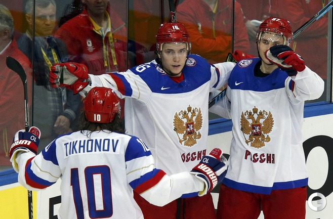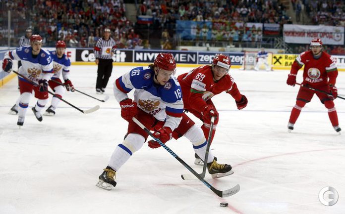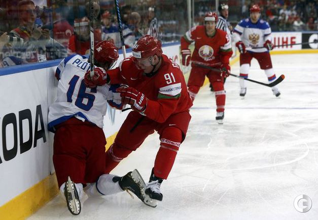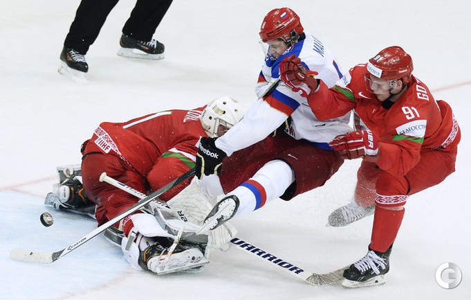 Минск (Белоруссия). Чемпионат мира. Групповой турнир. Группа B. Россия – Белоруссия – 2:1 (0:0, 2:0, 0:1). За сборную России дебютировал на ЧМ Евгений Малкин. Капитан россиян Александр Овечкин остался вне игры из-за травмы колена. Фото REUTERS и AFP