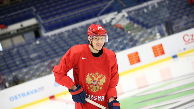 Острава. Сборная России провела раскатку перед стартовым поединком на ЧМ-2015 против Норвегии. Фото Сергей БАБУНОВ, пресс-служба сборной России