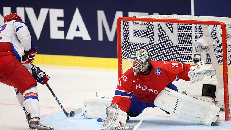Чемпионат мира. Групповой турнир. Группа B. Россия - Норвегия - 6:2 (4:0, 2:2, 0:0). Голы: Шипачев - 1 (бол., Ковальчук, Дадонов), 2:51 - 1:0. Анисимов - 1 (Ковальчук), 3:10 - 2:0. Зарипов - 1 (Мозякин, Тихонов), 15:14 - 3:0. Тихонов - 1 (Медведев, Зарипов), 16:53 - 4:0. Торесен - 1 (Олимб, Холес), 20:25 - 4:1. Торесен - 2 (Олимб, Аск), 26:50 - 4:2. Чудинов - 1 (Мозякин, Зарипов), 29:08 - 5:2. Панарин - 1 (Шипачев, Бирюков), 34:10 - 6:2. Фото Пресс-служба ФХР