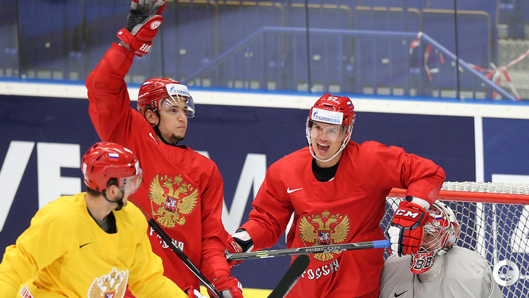 Хоккей. Чемпионат мира. Тренировка сборной России перед четвертьфиналом против сборной Швеции. Матч начнется завтра в 20.15 по московскому времени. Фото Сергей БАБУНОВ, пресс-служба сборной России