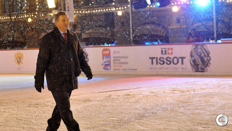 На Красной площади гала-матчем под открытым небом звезды кино, эстрады и спорта торжественно отметили знаменательное событие - отсчет 100 дней до чемпионата мира по хоккею в Москве и Санкт-Петербурге. Фото - Александр ФЕДОРОВ, "СЭ"